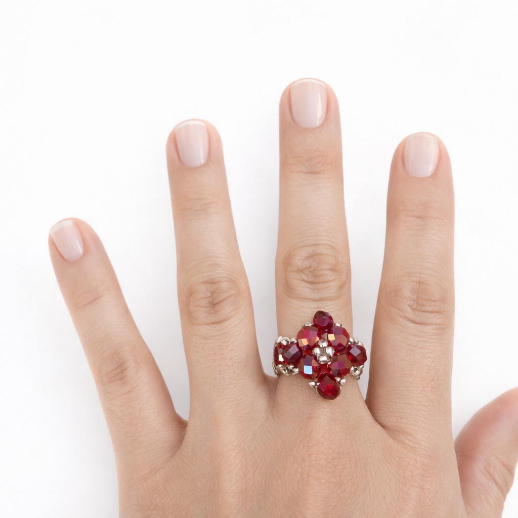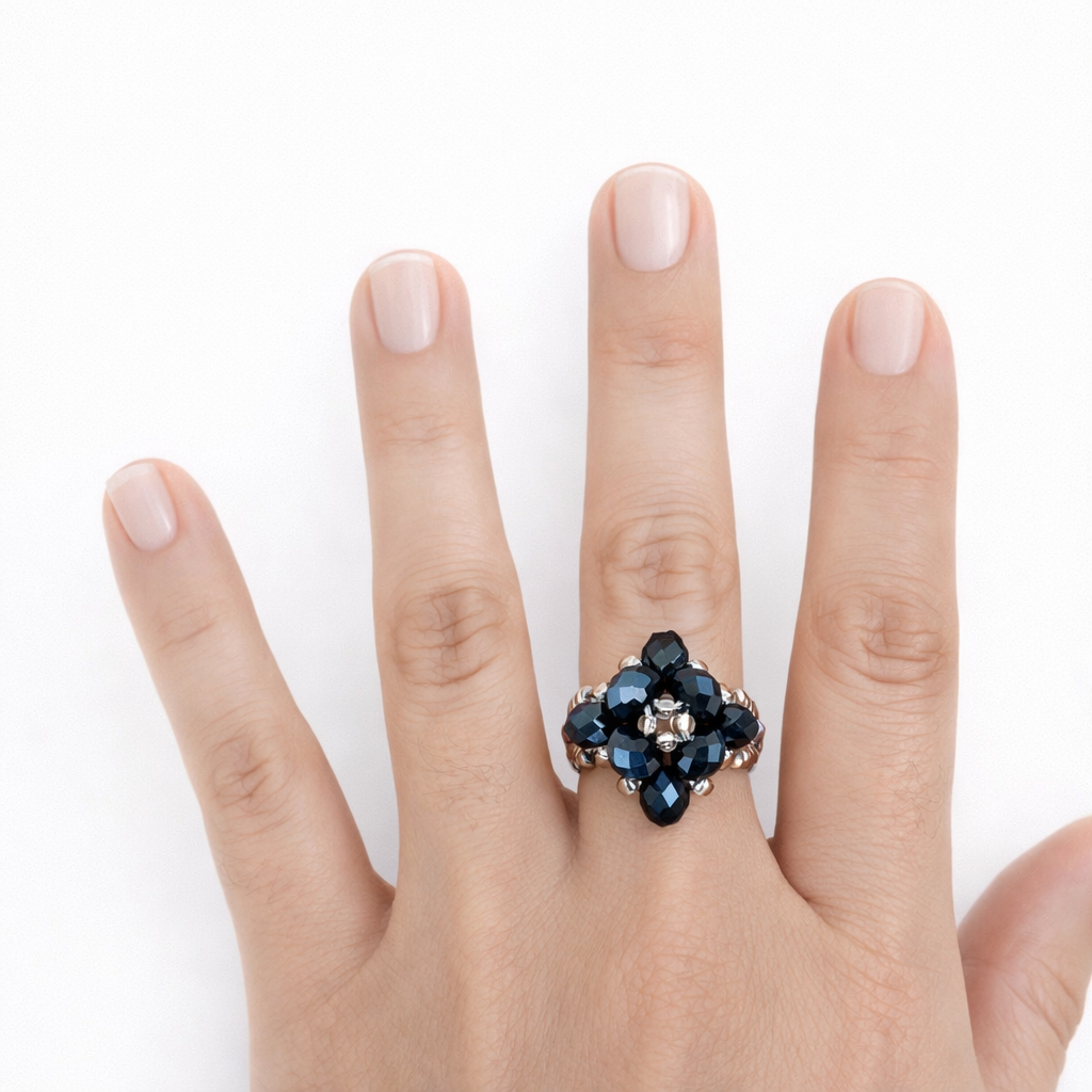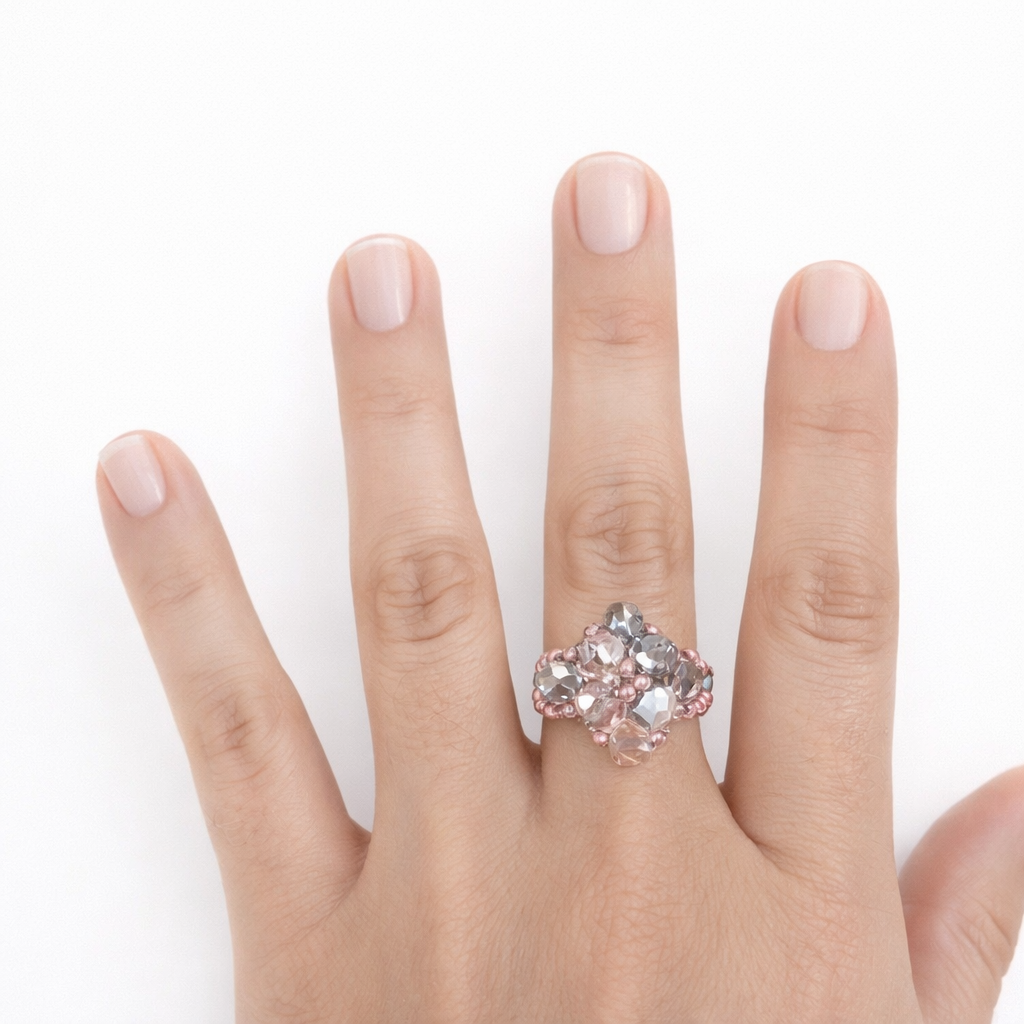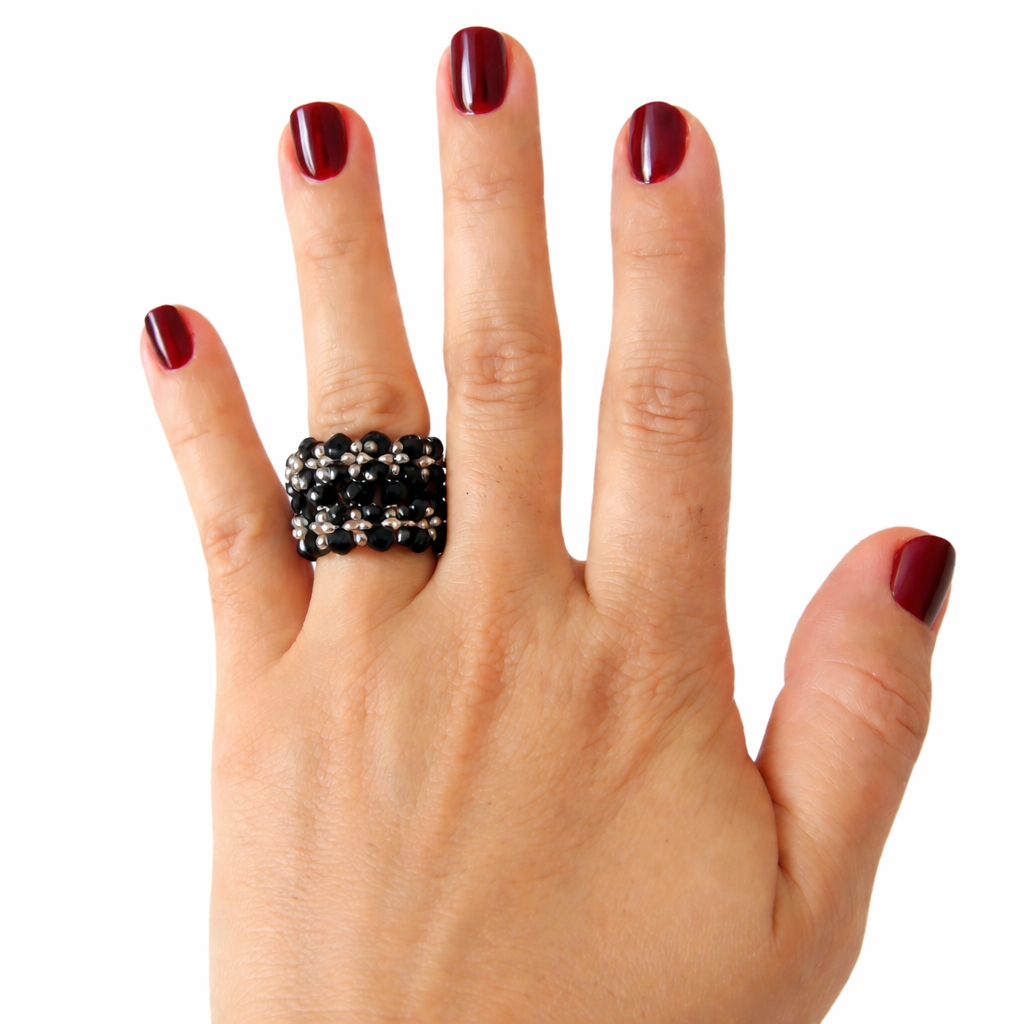Hermoso anillo hecho a mano, tejido en cristales y mostacillas.   Hechos a medida. Consultar  colores disponibles.