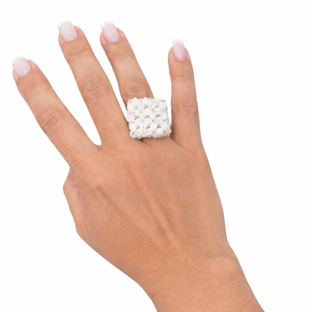 Anillo cuadrado, totalmente hecho a mano, tejido en cristales.