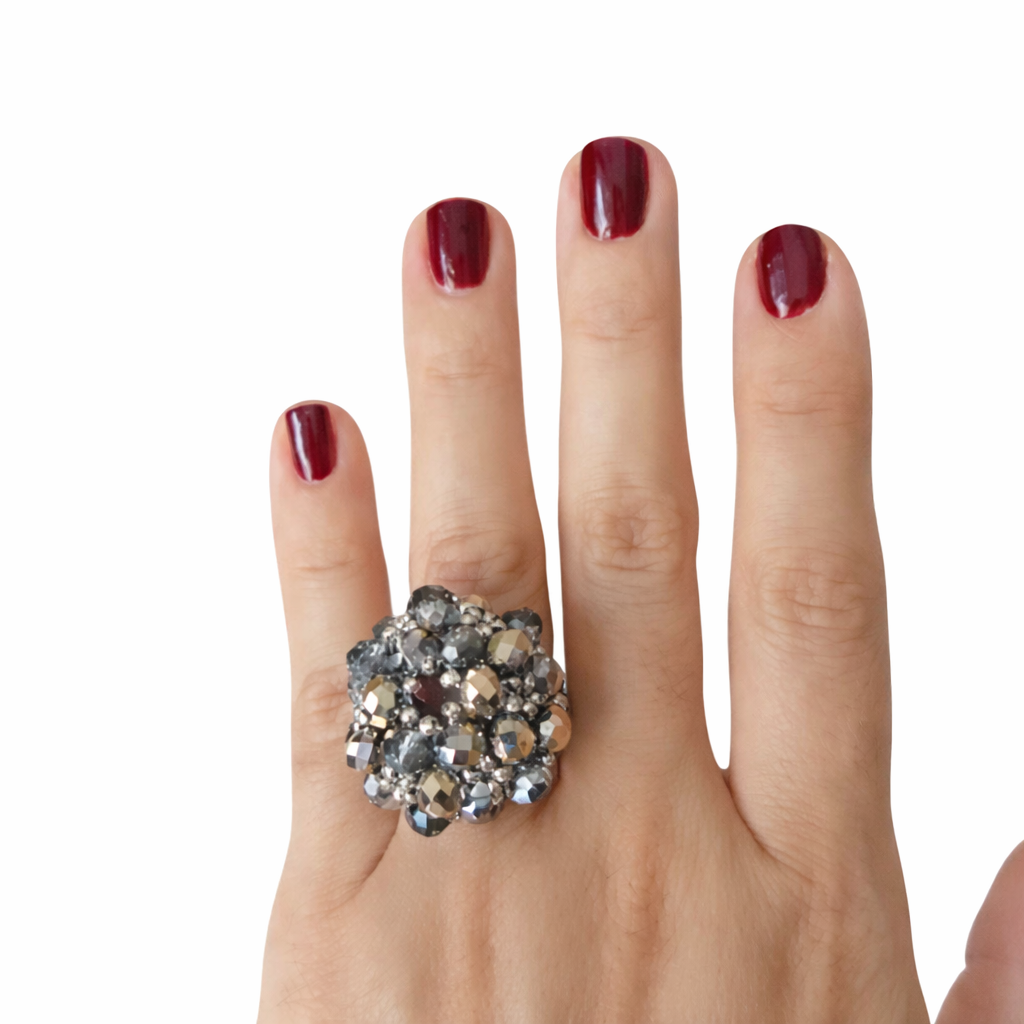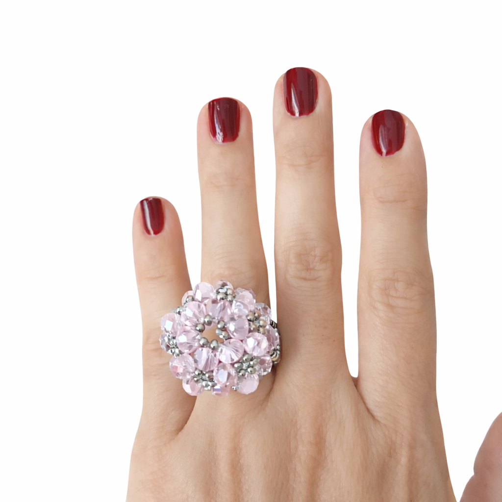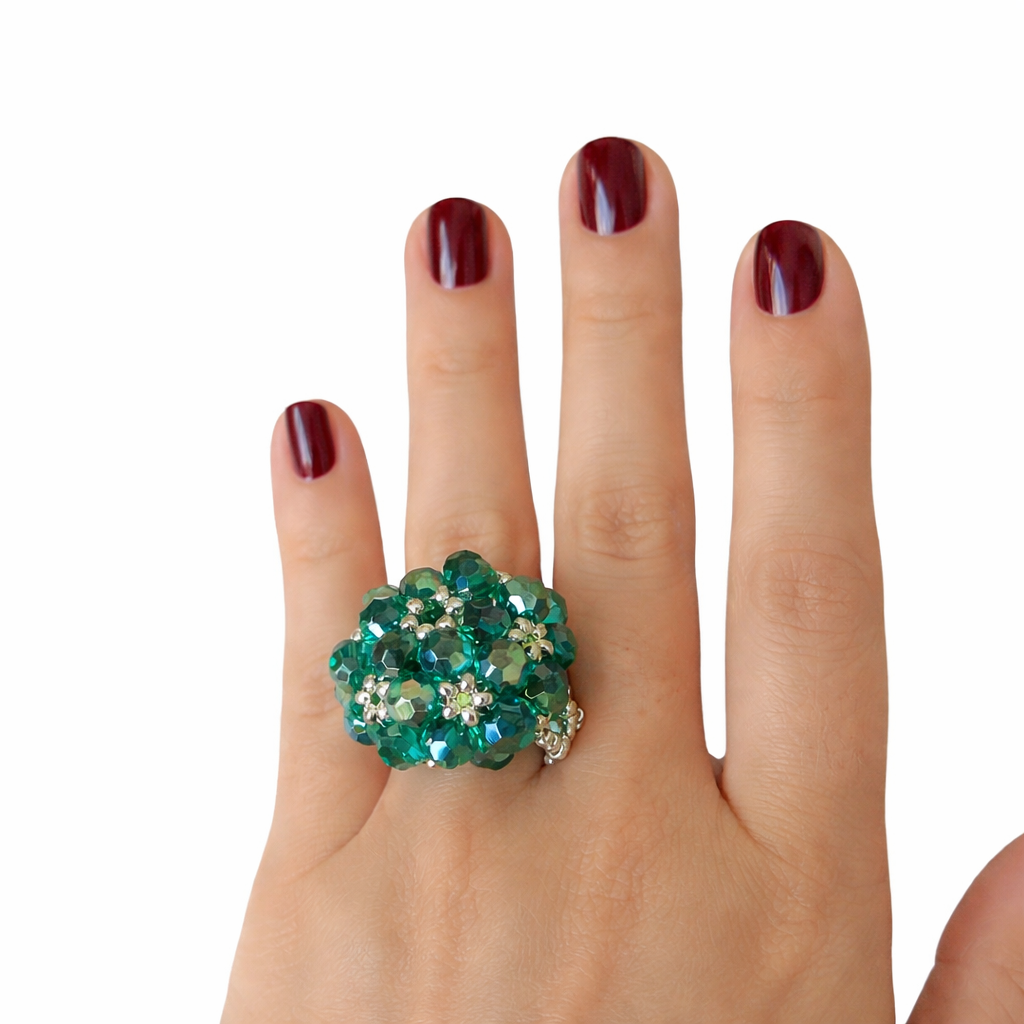 Anillo hecho a mano tejido en cristales y mostacillas checas.
