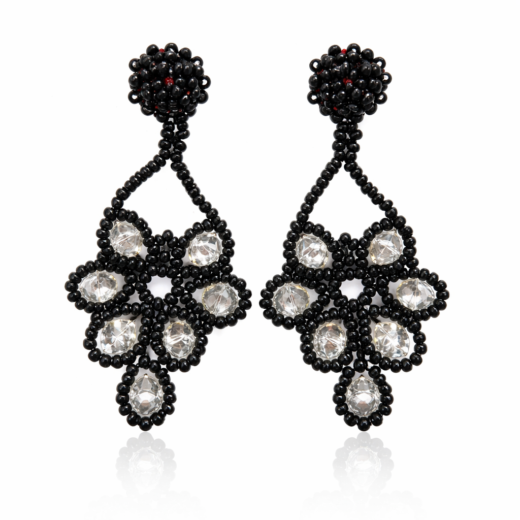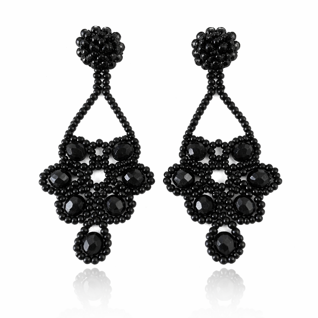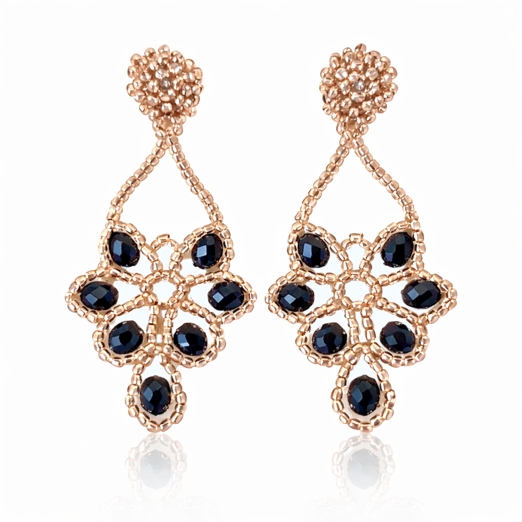 Aros tejidos a mano con cristales y mostacillas checas, con pasantes de acero hipoalergénico.
