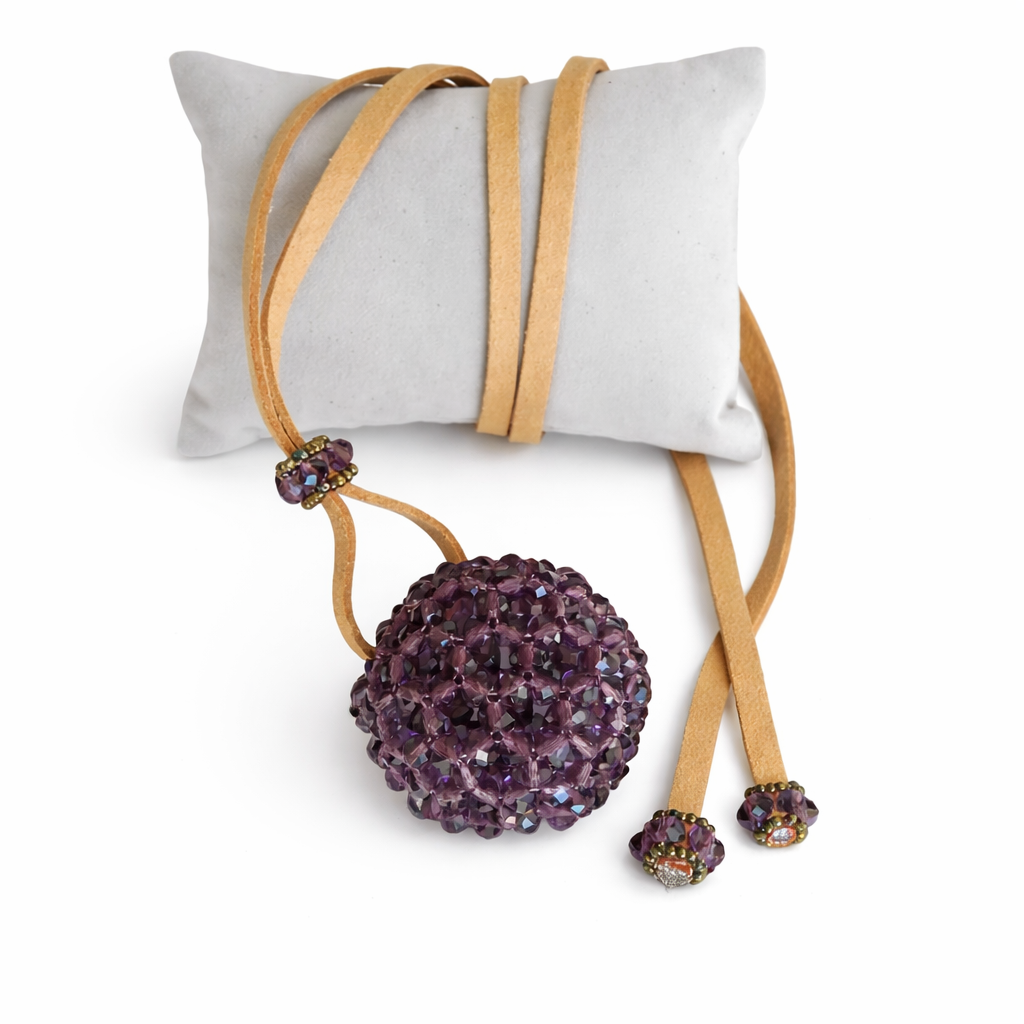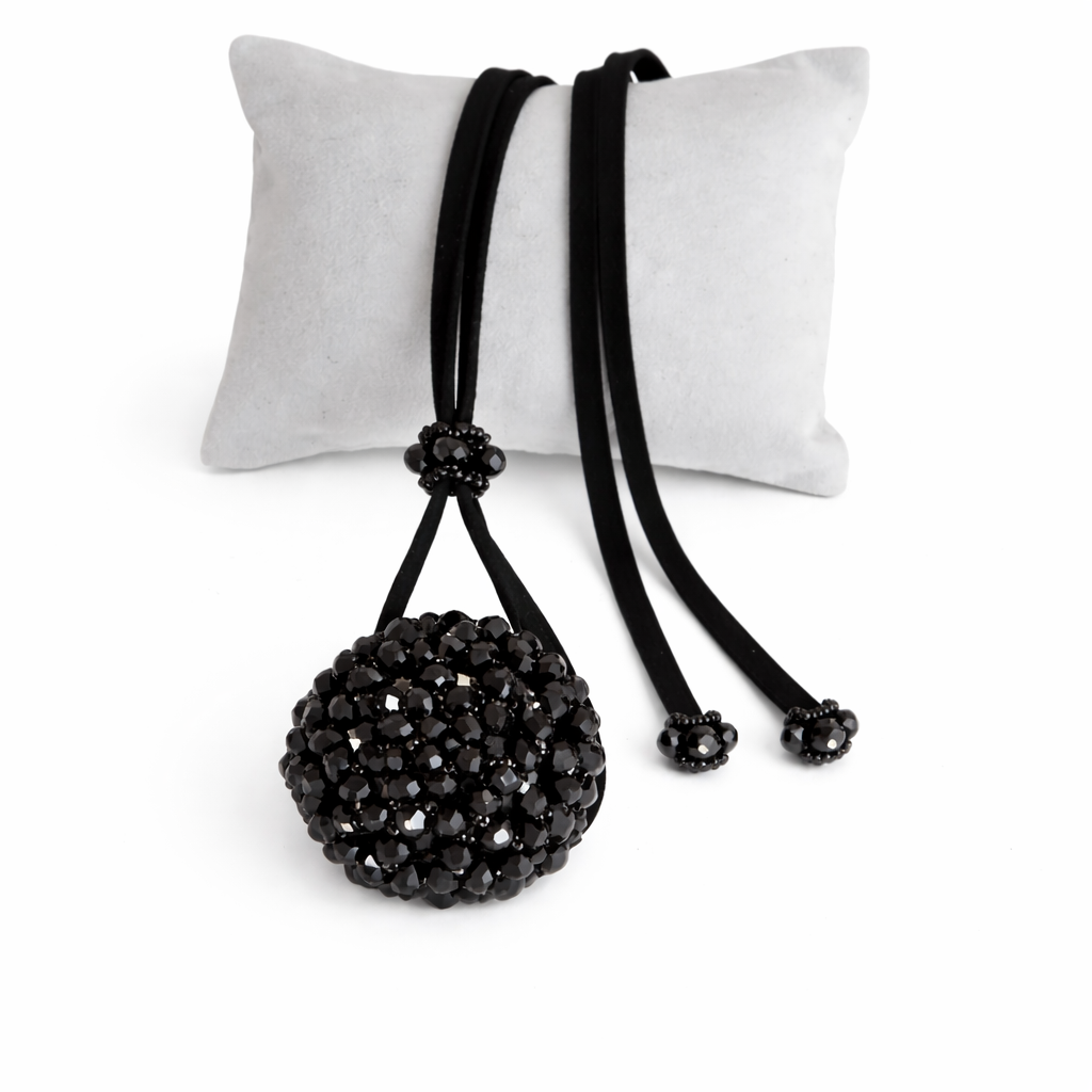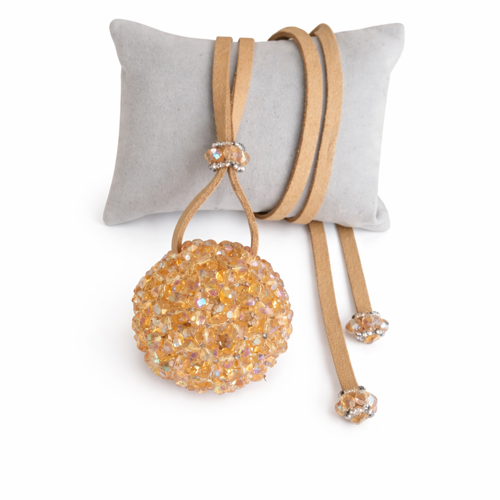 Dije Danna, un clásico de nuestra colección. Totalmente hecho a mano, tejido en cristales. El colgante es de gamuza, con sistema regulable. Lo podés usar corto o largo, según tu estilo. Un complemento ideal para destacar tu look, de día o de noche.