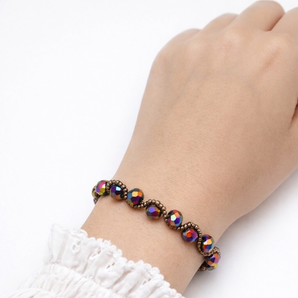 Pulsera hecha a mano con cristales y mostacillas checas.